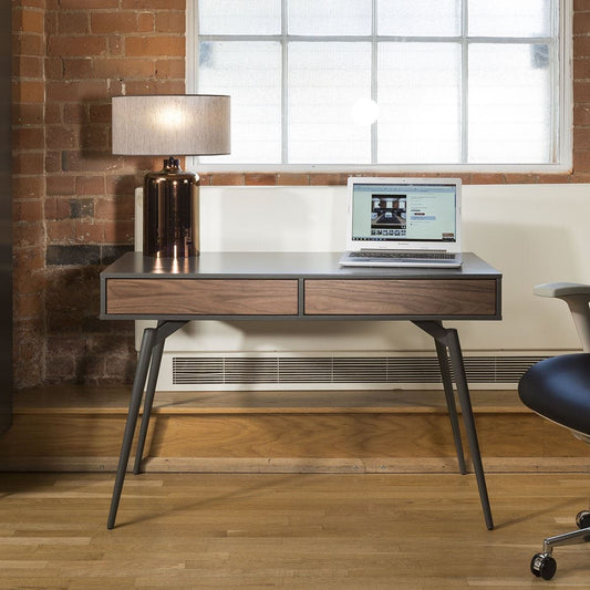 Tembie Desk / Console Table Rich Walnut / Grey 2 Drawers