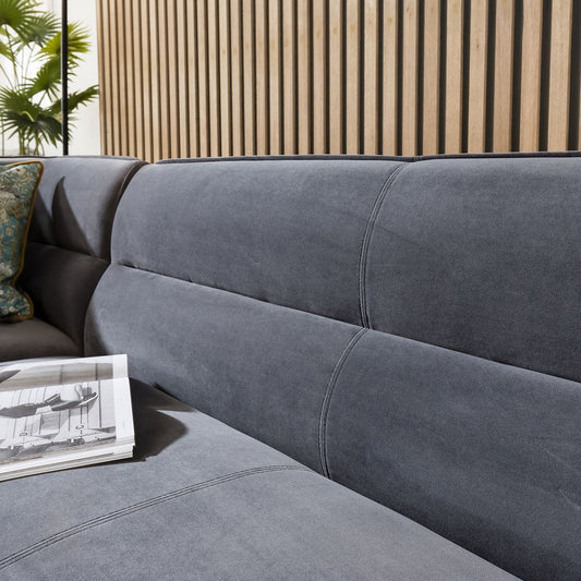 Corner Dining Bench - Grey Velvet, Black Metal Legs L/H