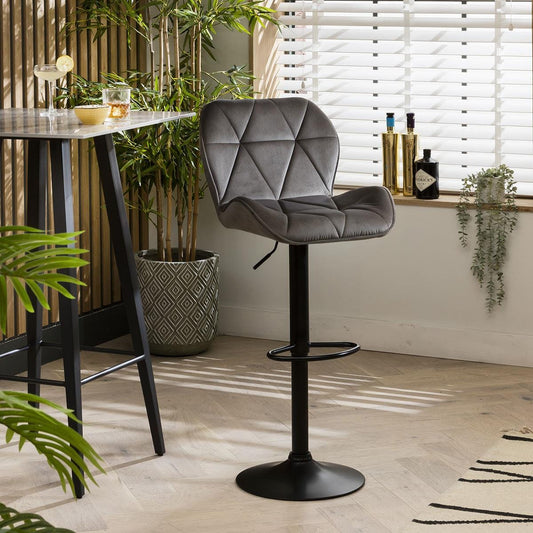 Set of 2 Modern Kitchen Bar Stools - Grey Velvet - Adjustable Seat Height