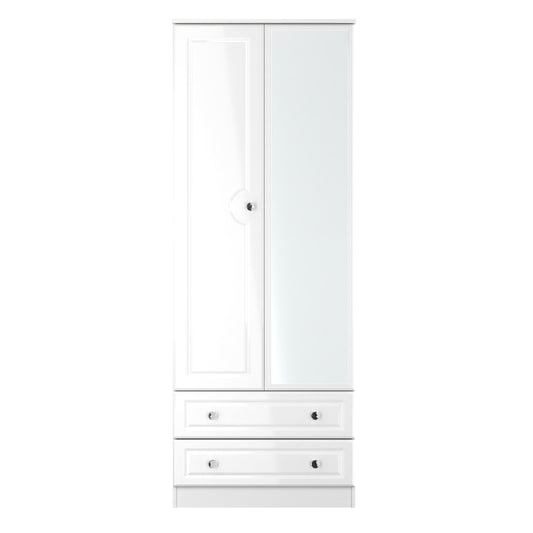 Lisbon White Gloss 2 Door 2 Drawer Wardrobe With Mirror Right Door