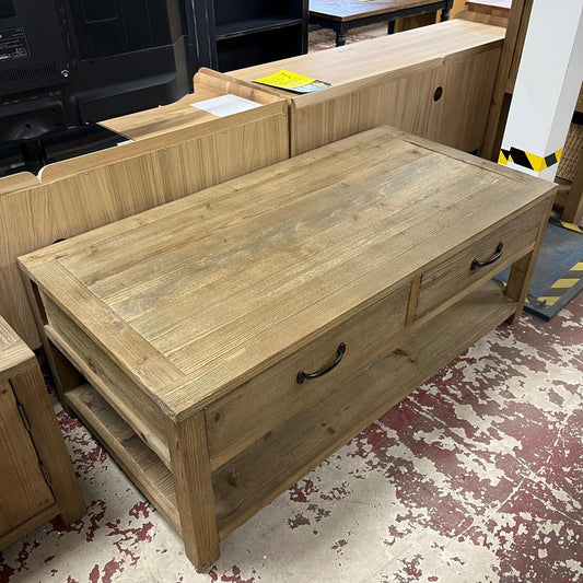Coffee Table Grey Wood With 2 Drawers Rectangle