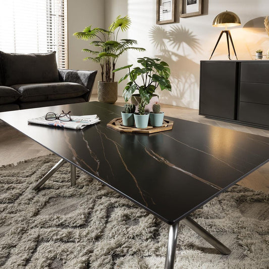 Coffee Table Grey & Gold Stone Effect on Stainless Steel Legs