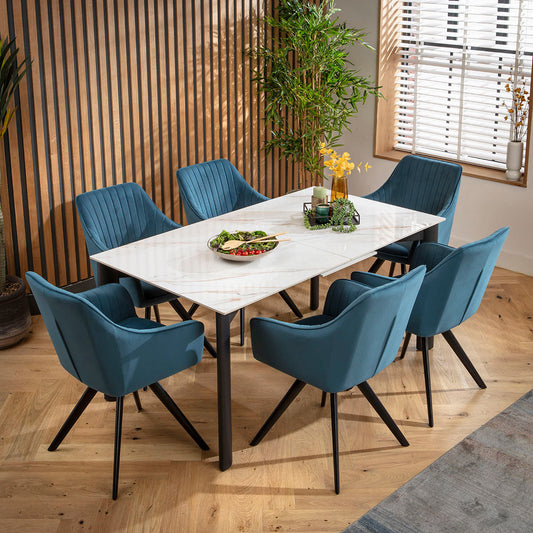 Cain Ceramic Extending Dining Set - 6 Seater - Blue