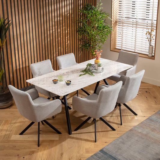 Caleb Ceramic Dining Set - 6 Seater - Grey Josie