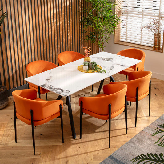 Caleb Ceramic Dining Set - 6 Seater - Burnt Orange