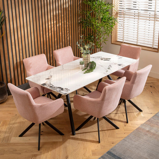 Caleb Ceramic Dining Set - 6 Seater - Pink Luna