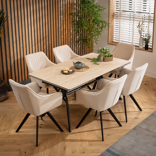 Carter Ceramic Extending Dining Set - 6 Seater - Cream-Beige