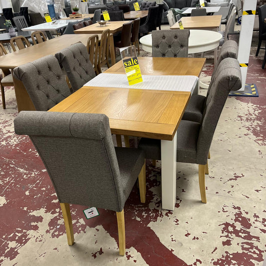 Ivory Leg With Oak Top Dining Table Extending With 6 Fabric Ket Chairs