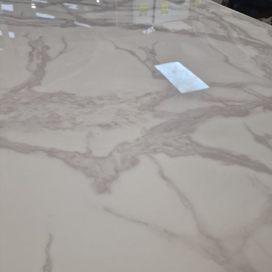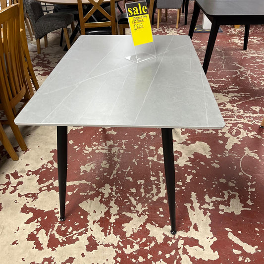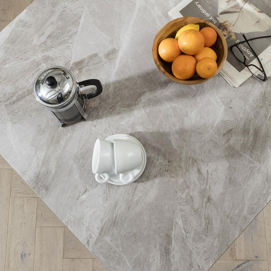 Square Ceramic Marble Dining Table - Spacious 4 Seater Grey High Gloss 90x90cm
