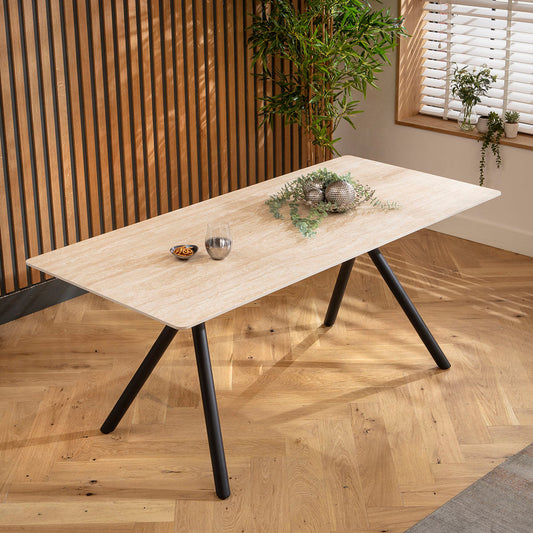 Caleb 6 Seater Ceramic Dining Table 180x85cm Beige