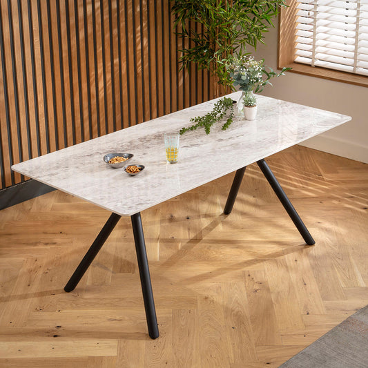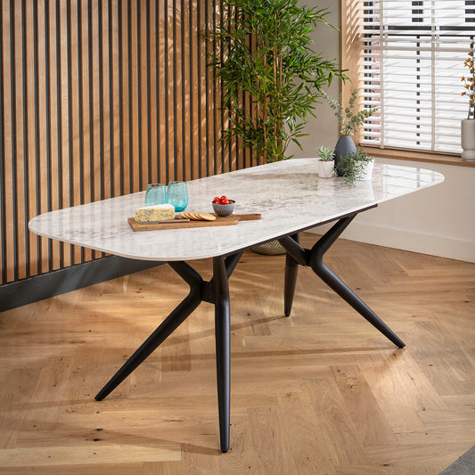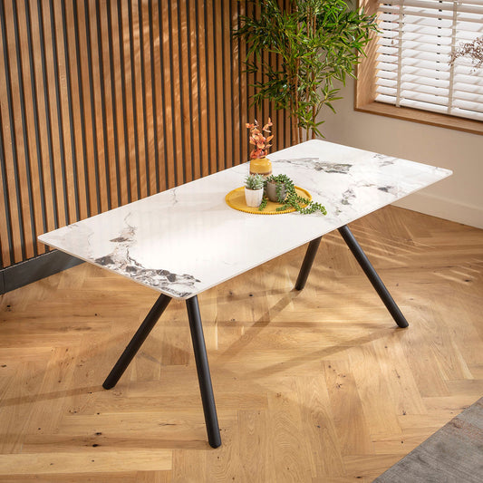 Caleb 6 Seater Ceramic Dining Table 180x85cm White