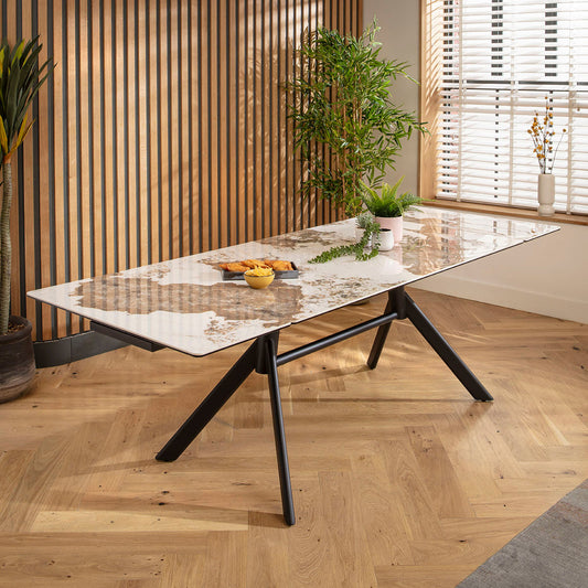 Conor 6 - 8 Seat Ceramic Extending Dining Table 160-200cm White Gold