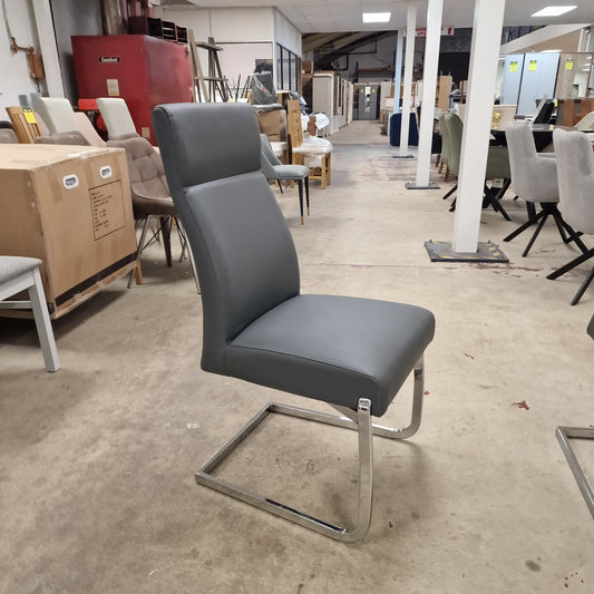 Set of 4 High Back Dark Grey Easy Clean Chrome Leg Large Dining Chair