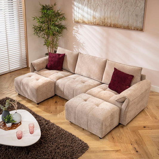 Jasmin Modern 3 Seater Modular U-Shape Chaise Sofa Beige 251x138cm 4