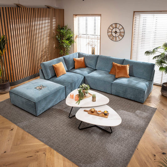 Rupert Modern 5 Seater Modular Corner Sofa Aqua Blue 297x297cm 14