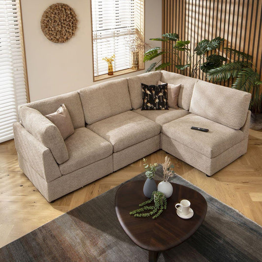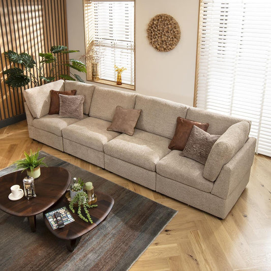 Sophie 4 Seater Modular Sofa Biscuit Beige Boucle 320x80cm 16