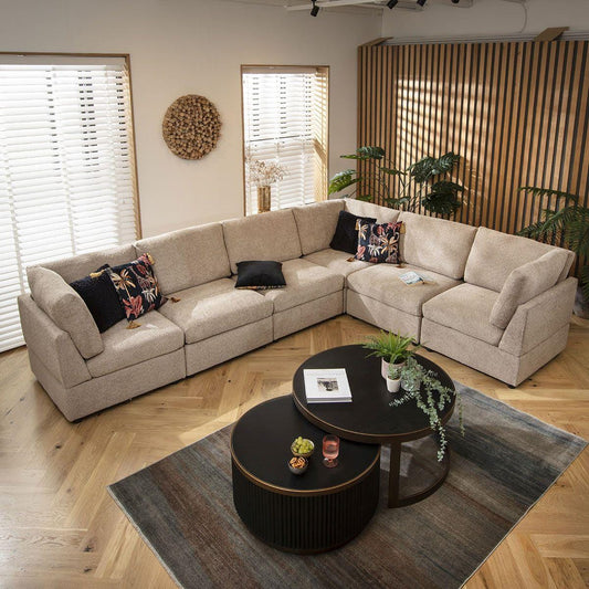 Sophie 6 Seater Corner Sofa Biscuit Beige Boucle 320x240cm 15L