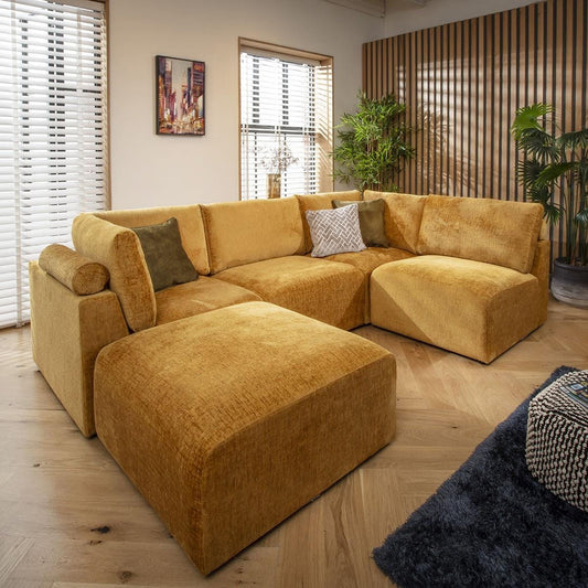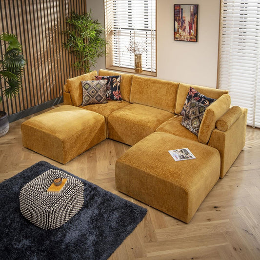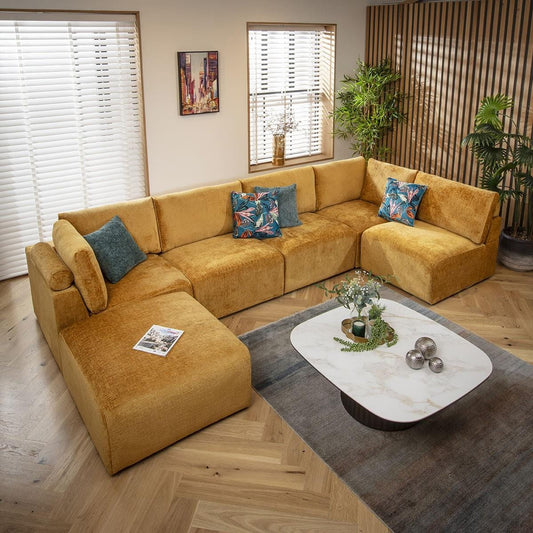 Victoria 6 Seater U-Shape Sofa Mustard Chenille 348x256cm 9L