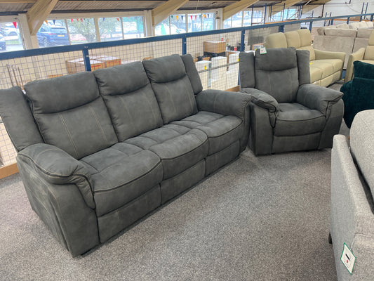 Belmont Sofa Set Grey Fabric High Back with Manual Recliners