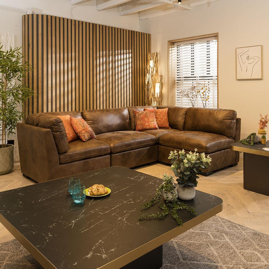 A: A corner sofa is a fixed design that fits into the corner of a room, providing ample seating. A modular sofa, on the other hand, is made up of multiple pieces that can be rearranged in different configurations, offering more flexibility in terms of layout and design.